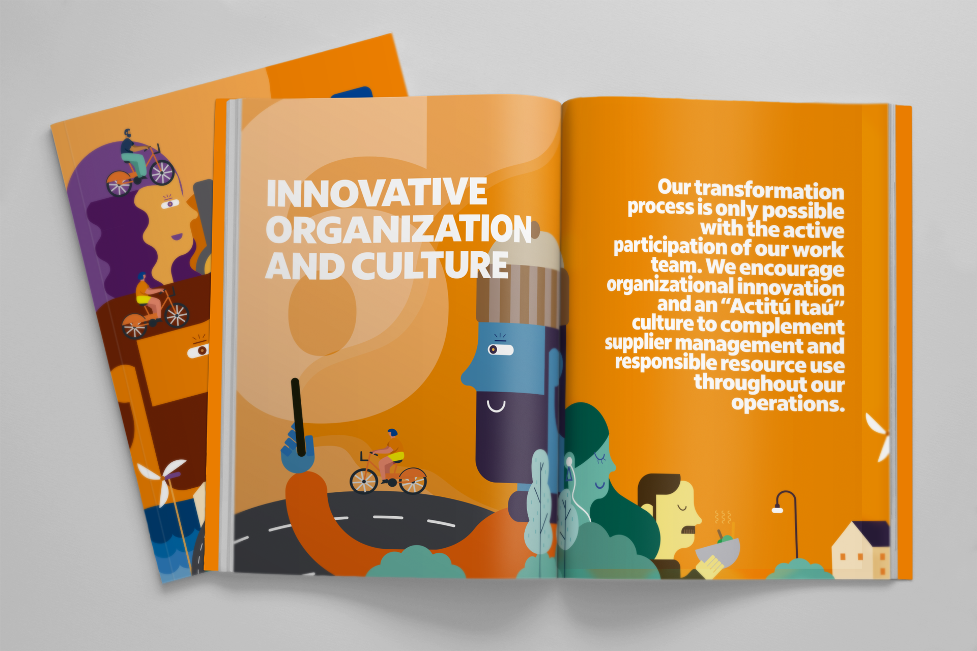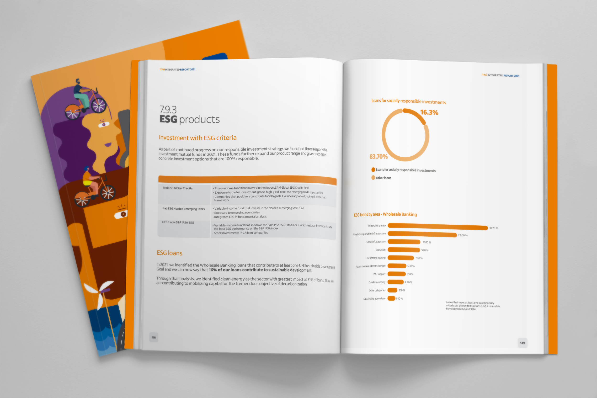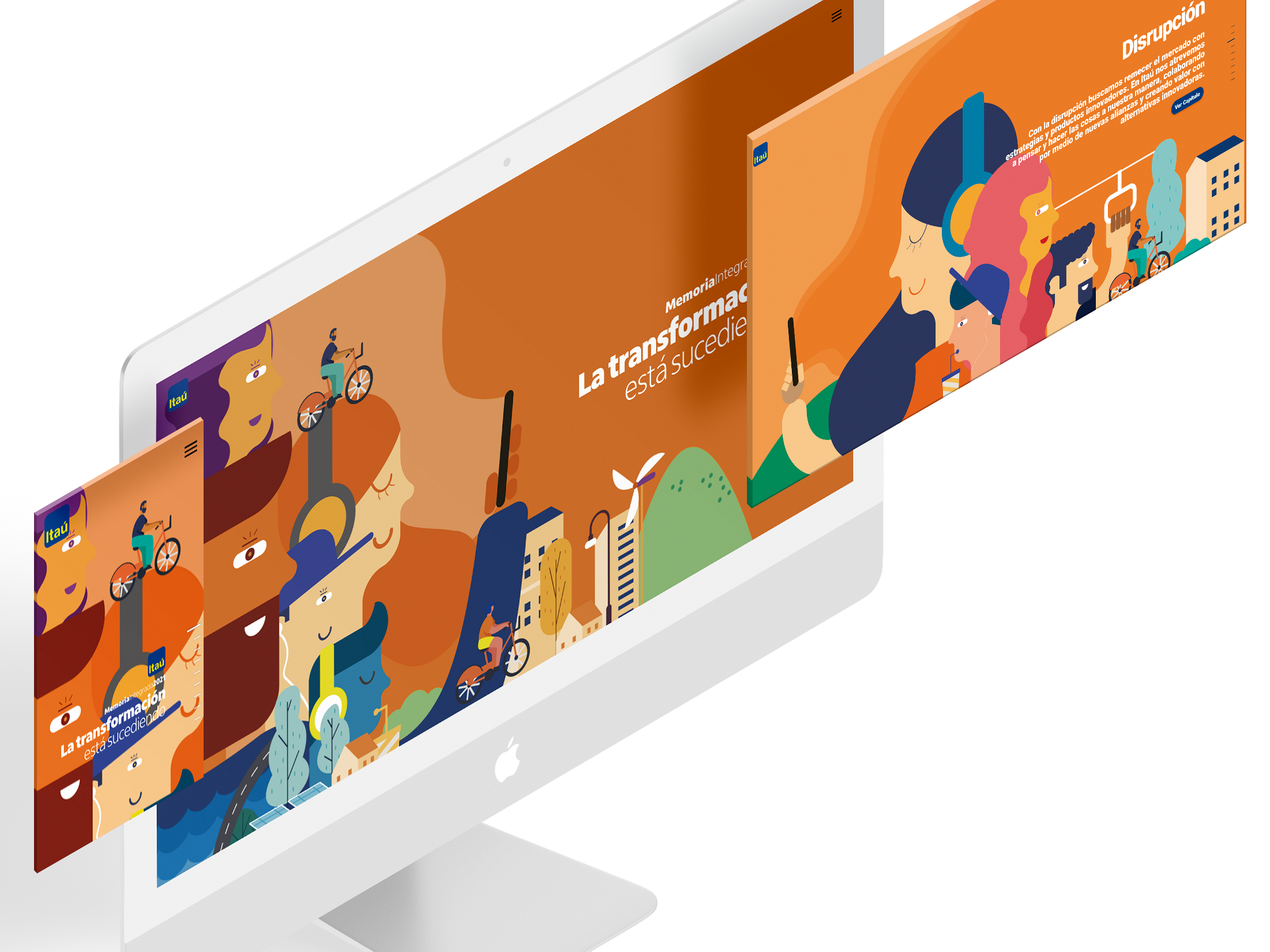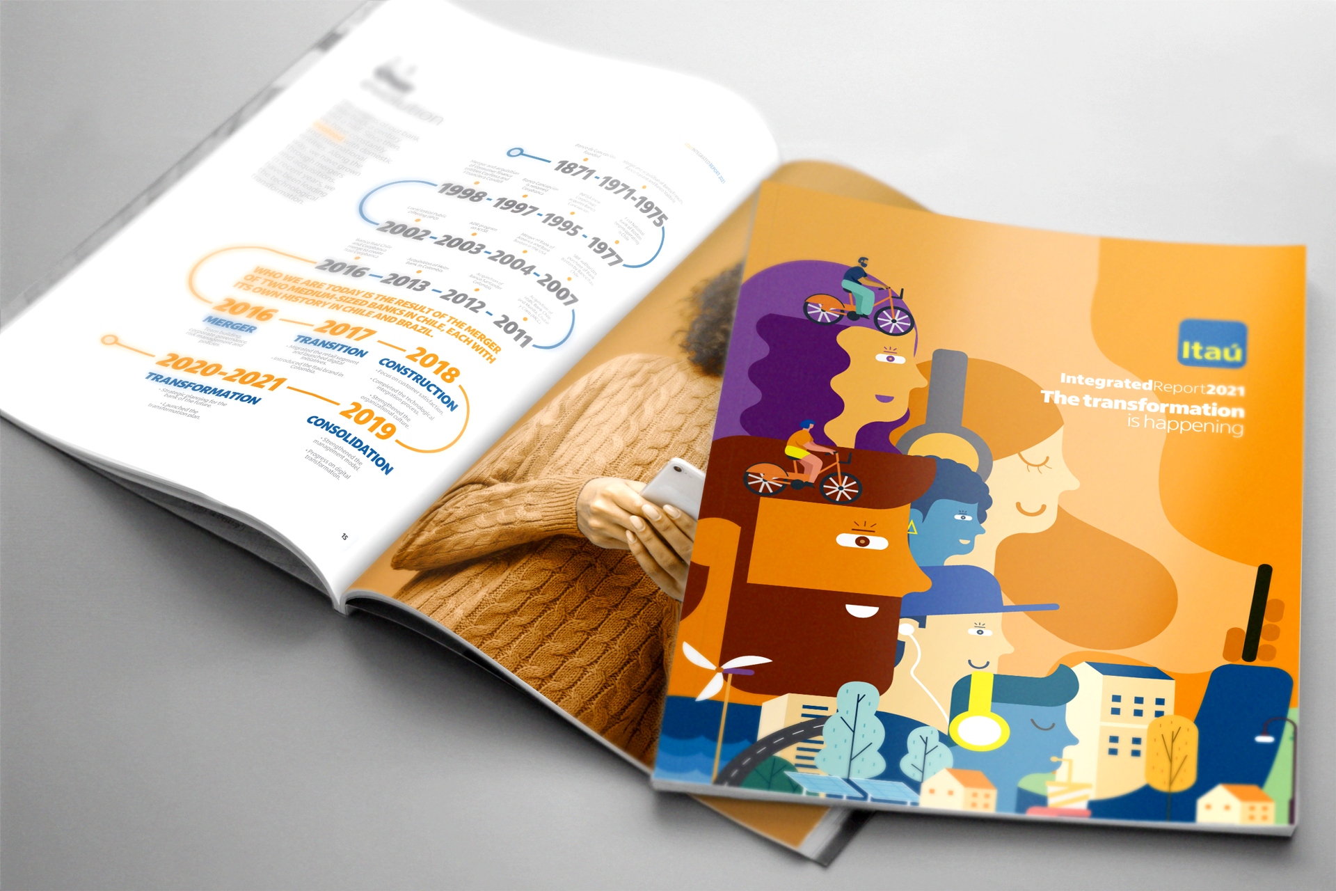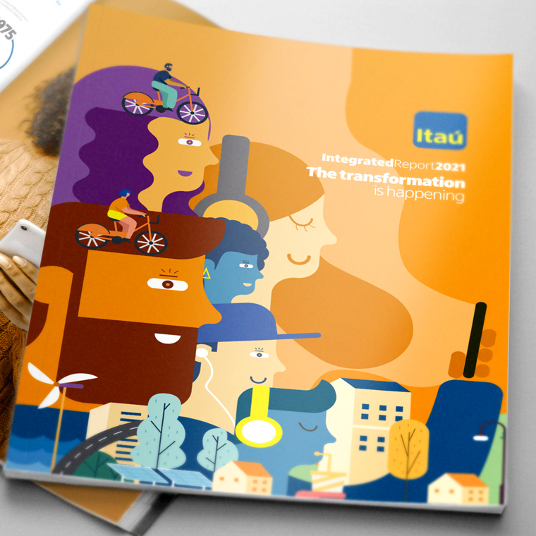 Ilustración, diseño y desarrollo de Memoria Integrada 2021 para Banco Itaú en formato editorial y digital